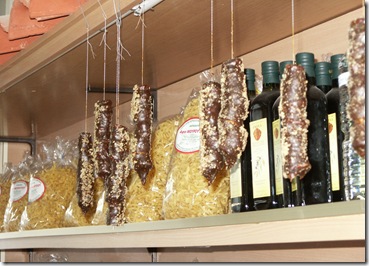 'Ελα όμως που δεν είχα τη φωτομηχανή μαζί μου , γιά να τα φωτογραφίσω , σκέφτηκα όμως πως θα φωτογράφιζα αυτά που αγόρασα , αλλά δυστυχώς αυτά..εξαφανιστήκανε αμέσως , γι' αυτό πήγα πάλι στο μαγαζί , που έχει τοπικά προιόντα των Λαγκαδίων , Τρίπολης και Βυτίνας , τα φωτογράφισα , και σας δίνουμε τη φωτογραφία , έτσι φγιά να ξέρουν οι νέοι τι και πως είναι τα " σουτζούκια " , θα πρέπει όμως να θυμίσουμε και τη διαδικασία φτιαξίματος , που είναι πολύ εύκολη .