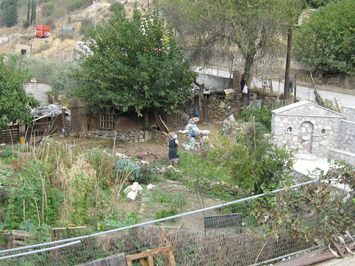 Αυτή..δεξιά στη φωτογραφία , μέσα στο..γιούρτι , συγγνώμη..στο ...Garden του..κτήματος Μπέη , είναι , ναι μα ..τω..Θεώ , η βρύση του...Βουνού , αλήθεια σας λέμε , έγινε εκεί γιά..λόγους..δυσκολίας , και γιά να ποτίζονται τα ζαρζαβατικά τ' ...Garden....όσο γιά την κυρία που...σκαλίζει τις..μελιτζανοπιπεριές...περαστική είναι , έβγαλε τα...μαναράκια της ..βόλτα και...περιμένει το...λεωφορείο..