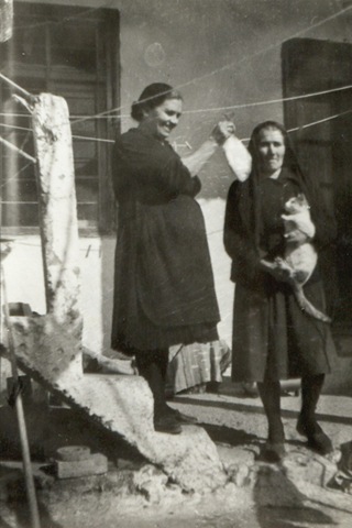Μιά ωραία φωτογραφία , δεκαετία του 50 , στο πατρικό μου σπίτι , η θειά μου η Βιολέττα , με τη μάνα μου , η μιά κρατάει τη..γάτα κι' η άλλη το...ψάρι...ας είναι κι' οι δυό αναπαυμένες , τις θυμόμαστε και , φυσικά , τις αγαπάμε.....