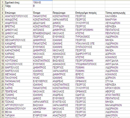 Προφανώς , αγαπημένοι μας φίλοι , τη χρονιά αυτή 1964-65 , έγινε φαίνεται πάλι διαχωρισμός Γυμνασίου και Λυκείου και δυστυχώς , τα στοιχεία που διαθέτουμε αφορουν στο Λύκειο , θα κάνουμε μια προσπάθεια να εξασσφαλίσουμε και τα αντίστοιχα του Γυμνασίου .