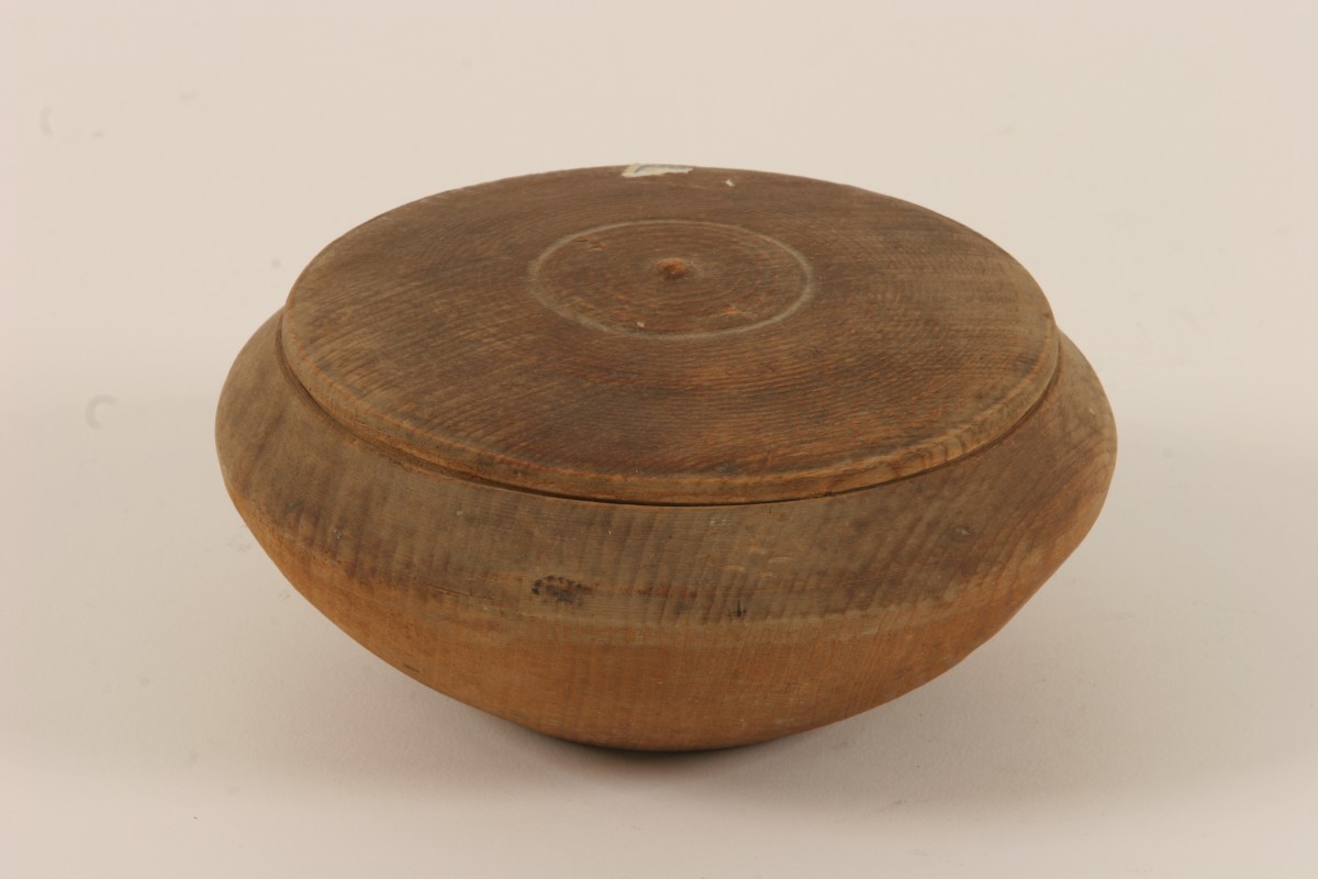 Ξύλινο σκεύος αερο..υδατοστεγές , που χρησιμοποιούσαν οι γεωργοκτηνοτρόφοι για να παίρνουν φαγητά , ελιές , τυρί κλπ μαζί τους στη δουλειά τους