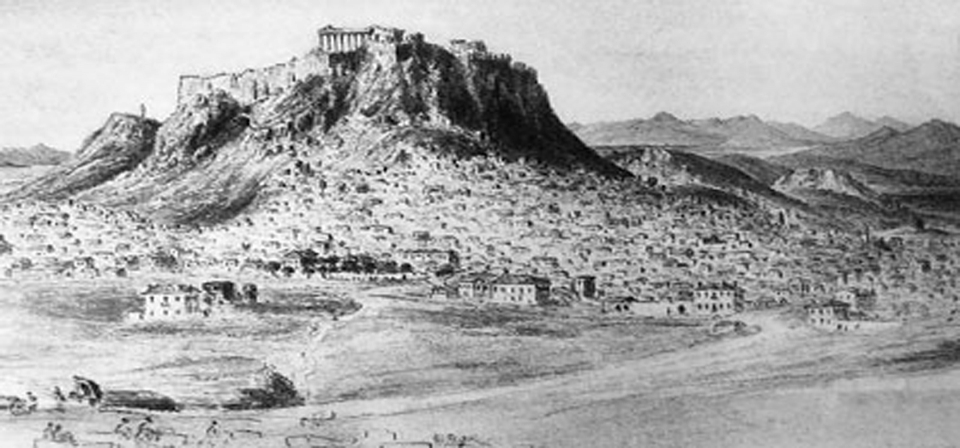 … Είχαν αρχίσει τότε να συρρέουν εις τας Αθήνας από όλα τα μέρη του κόσμου Έλληνες, και είχαν αρχίσει να κτίζουν οικίας νέας και μάλλον ευπρεπείς. Δρόμοι δεν υπήρχαν, παρά μόνο στενά τουρκικά καλντιρίμια, αι δε περισσότεραι οικίαι, άγνωστον διατί, εκτίζοντο εις τας κλιτύς της Ακροπόλεως.