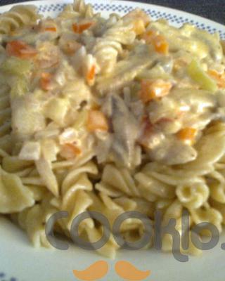 4. Σε άλλη κατσαρόλα βάζουμε ελαιόλαδο και αφού ζεσταθεί προσθέτουμε τα λαχανικά μας να τσιγαριστούν καλά. Στη συνέχεια προσθέτουμε την κρέμα γάλακτος και τα μπαχαρικά και ανακατεύουμε καλά. Αφήνουμε σε μέτρια φωτιά να δέσει καλά η σάλτσα μας. Στο τέλος ρίχνουμε την γραβιέρα να πάρει ωραία αλμυρή γεύση. Σερβίρουμε τις βίδες με τη σάλτσα.