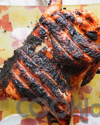 - Τα κοτόπουλα θέλουν αργό ψήσιμο άρα και χαμηλή ένταση φωτιάς. Τοποθετούμε το κοτόπουλα στην σχάρα της ψησταριάς, πρώτα με την κοιλιά προς τα κάτω. Χρειάζεται πολλές φορές γύρισμα, για να έχουμε σωστό ψήσιμο και να μην καεί. Το γυρίζουμε ενδιάμεσα αρκετές φορές κατά τη διάρκεια του ψησίματος. Αν θέλουμε την πέτσα ξεροψημένη το αφήνουμε από την εξωτερική πλευρά παραπάνω ώρα. Θα χρειαστεί 30 με 40 λεπτά ψήσιμο.