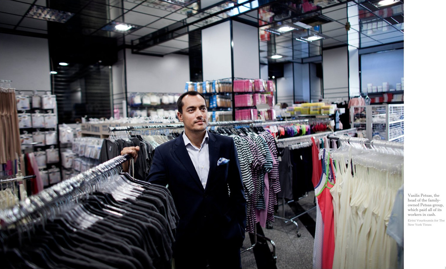 «Λίγες ήταν οι εταιρείες που είχαν προετοιμαστεί για κλειστές τράπεζες και πλήρωσαν με μετρητά τους υπαλλήλους τους» σχολιάζει η Ντάλεϊ και αναφέρει το παράδειγμα του ομίλου εταιρειών Πέτσας Α.Ε., η οποία παράγει από βιοντίζελ μέχρι και βαμβακερά ρούχα, ο οποίος πλήρωσε όλους τους εργαζόμενους, περίπου 130 άτομα σε μετρητά. «Δεν θέλαμε να τους κάνουμε να περιμένουν στις ουρές για ώρες για να πάρουν 60 ευρώ» είπε ο διευθυντής της εταιρείας Βασίλης Πέτσας στους «New York Times». «Ηταν μια πραγματικά ευχάριστη έκπληξη» δήλωσε η 23χρονη εργαζόμενη Ευφροσύνη Μαλάμου.