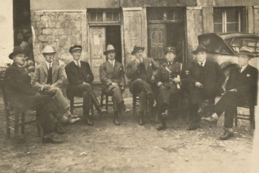 Mιά πολύ ωραία προπολεμική φωτογραφία , βγαλμένη στη Βαθειά , παρούσα η..πνευματική αριστοκρατία του χωριού μας , στο βάθος και μιά...λιμουζίνα της εποχής....