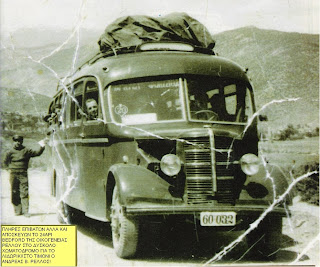 Στον " Αντώνη " , Φεβρουάριο του 1953 , μια παρέα " οδηγο...βοηθών ", μπροστά σε ένα απ' τα σύγχρονα λεωφορεία τύπου FORD . Από αριστερά , Κ.Ανέστος , μπάρμπα Τριαντάφυλλος ( Παχνάς ; ) , Χαρ. Ζέκιος , Σταύρος Υφαντής - Κατροδαύλης , Τάσος Μπούτσικος , από Κονιάκο , Θυμ.Γεωργουσόπουλος και Ανδρέας Μαργέλλος - Ελλάδας .